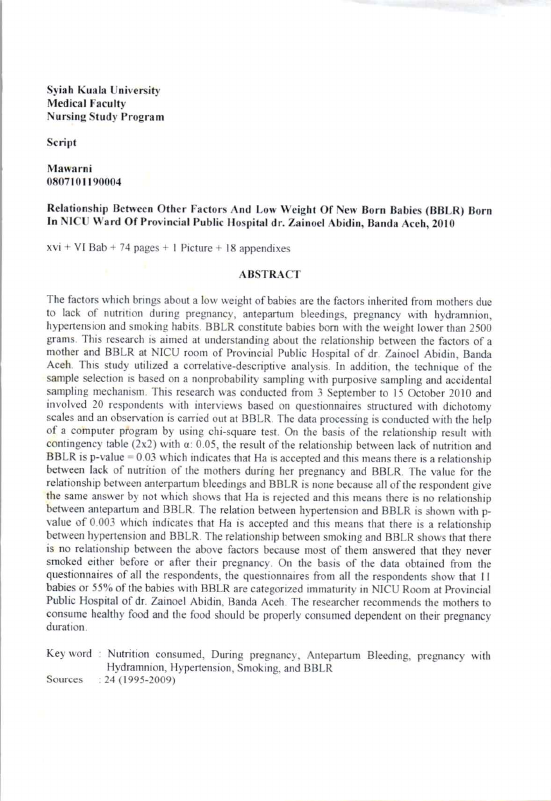 Baca Juga : GAMBARAN FAKTOR-FAKTOR YANG MEMPENGARUHI BAYI BERAT BADAN LAHIR RENDAH DI RSUD DR. ZAINOEL ABIDIN BANDA ACEH TAHUN 2009 (Tengku Chairannisa Putri, 2022)