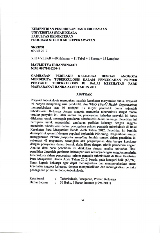 Baca Juga : PERILAKU KELUARGA DALAM UPAYA PENCEGAHANRNPENULARAN TB PARU DI UPTD BALAI KESEHATANRNPARU MASYARAKAT KOTA RNBANDA ACEH (Muliana , 2015)