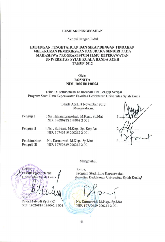 Baca Juga : HUBUNGAN PENGETAHUAN DAN SIKAP DENGAN TINDAKAN MELAKUKAN PEMERIKSAAN PAYUDARA SENDIRI PADA MAHASISWA PROGRAM STUDI ILMU KEPERAWATANRNUNIVERSITAS SYIAH KUALA BANDA ACEHRNTAHUN 2012 (ROSNITA, 2014)