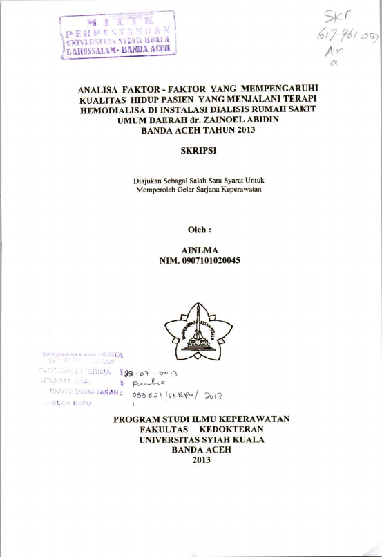 Baca Juga : ANALISA FAKTOR-FAKTOR YANG MEMPENGARUHI KUALITAS HIDUP PASIEN YANG MENJALANI TERAPI HEMODIALISA DI INSTALASI DIALISIS RUMAH SAKIT UMUM DAERAH DR. ZAINOEL ABIDIN BANDA ACEH TAHUN 2013 (Ainlma, 2023)