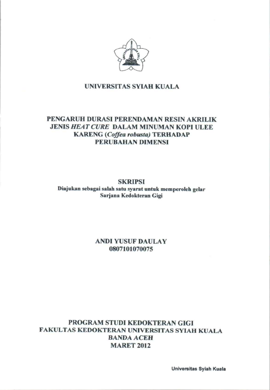 Baca Juga : PENGARUH DURASI PERENDAMAN RESIN AKRILIK JENIS HEAT CURE DALAM MINUMAN KOPI ULEE KARENG (COFFEA ROBUSTA) TERHADAP PERUBAHAN DIMENSI (ANDI YUSUF DAULAY, 2015)