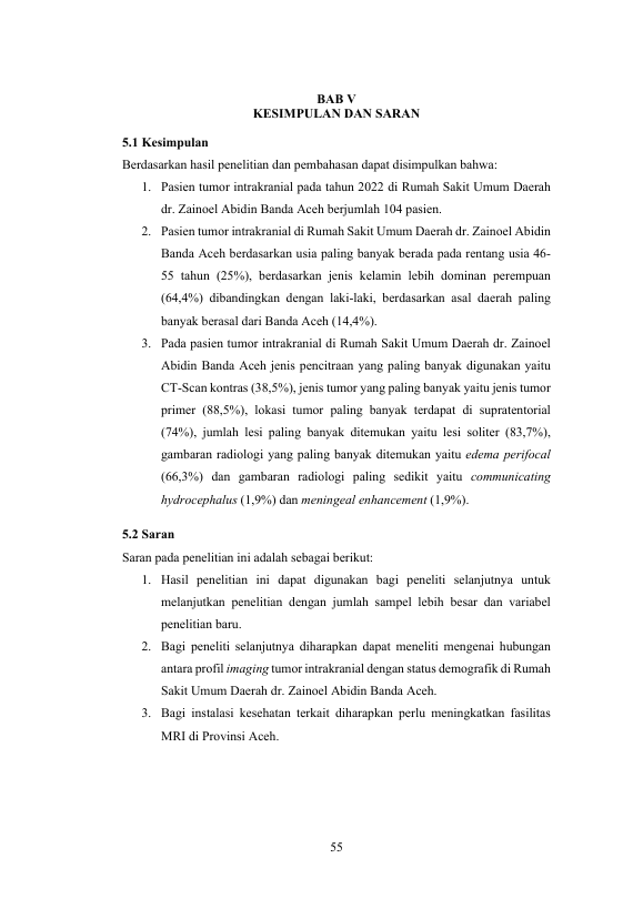 Baca Juga : PROFIL PENDERITA TUMOR OTAK BERDASARKAN MAGNETIC RESONANCE IMAGING DI RSUD DR. ZAINOEL ABIDIN BANDA ACEH (RAIHAN MURTADHA, 2023)