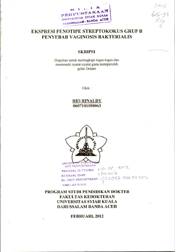 Rio Rinaldy, EKSPRESI FENOTIPE STREPTOKOKUS GRUP B PENYEBAB VAGINOSIS BAKTERIALIS. Banda Aceh Fakultas Kedokteran,2012