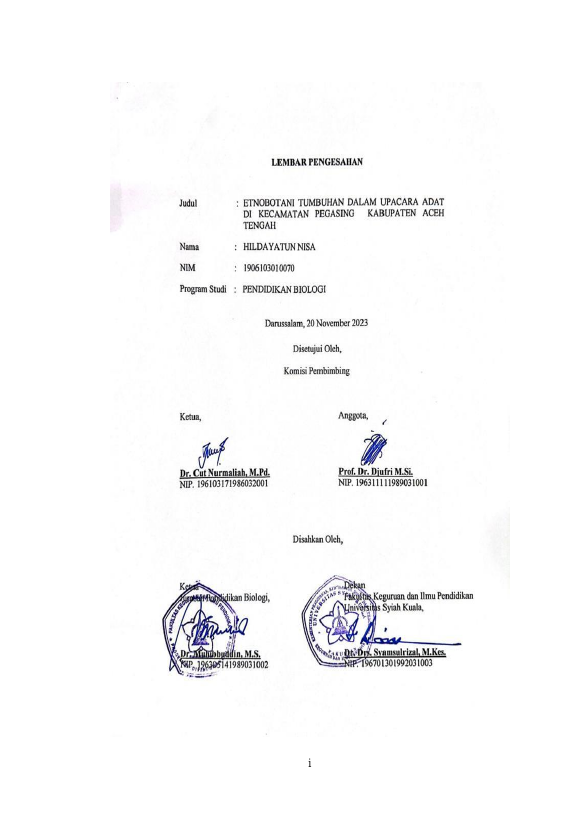 Baca Juga : STUDI ETNOBOTANI UPACARA ADAT SUKU ALAS DI KECAMATAN BABUSSALAM KABUPATEN ACEH TENGGARA PROVINSI ACEH (ARMAYA FITRI, 2026)