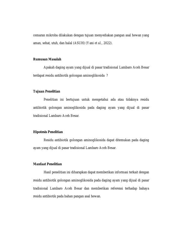 Baca Juga : DETEKSI RESIDU ANTIBIOTIK PADA DAGING BURUNG PUYUH (COTURNIX COTURNIX JAPONICA) YANG DIPASARKAN DI PASAR TRADISIONAL KABUPATEN ACEH BESAR (SITI MARHAMAH SARAGIH, 2022)