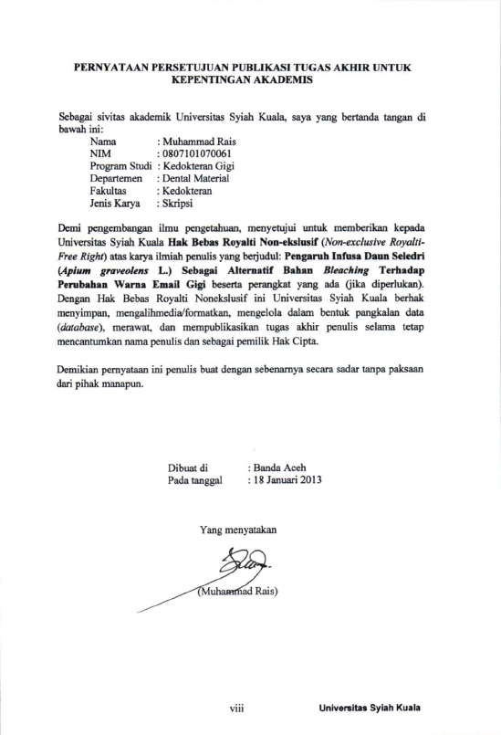 Baca Juga : APLIKASI EKSTRAK BUAH PEPAYA (CARICA PAPAYA L.) SEBAGAI ALTERNATIF BAHAN BLEACHING ALAMI DITINJAU DARI PERUBAHAN WARNA DAN GAMBARAN MIKROSKOPIS PADA EMAIL GIGI (FLORENCIA LISADI, 2017)