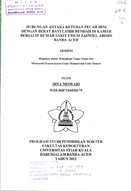 Baca Juga : HUBUNGAN KETUBAN PECAH DINI DENGAN LUARAN BAYI BERAT BADAN LAHIR RENDAH TERHADAP ANGKA SURVIVAL RATE SETELAH 1 MINGGU DILAHIRKAN DI RUMAH SAKIT UMUM DR. ZAINOEL ABIDIN BANDA ACEH (Dannu Wijaya, 2021)