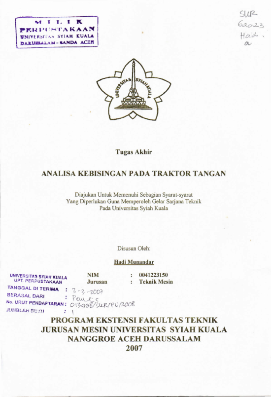 Baca Juga : ANALISA KEBISINGAN PADA TRAKTOR TANGAN (Hadi Munandar, 2023)