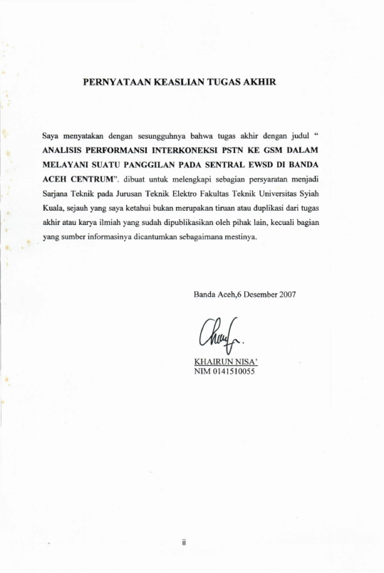 Khairun Nisak, ANALISIS PERFORMANSI INTERKONEKSI PSTN KE GSM DALAM MELAYANI SUATU PANGGILAN PADA SENTRAL EWSD DI BANDA ACEH CENTRUM. Banda Aceh Fakultas Teknik,2007