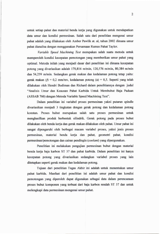 Baca Juga : ANALISA PERTUMBUHAN KEAUSAN TEPI PAHAT KARBIDA PADA PROSES BUBUT BAJA KARBON S 45 C (Ahmad Syaukani, 2024)
