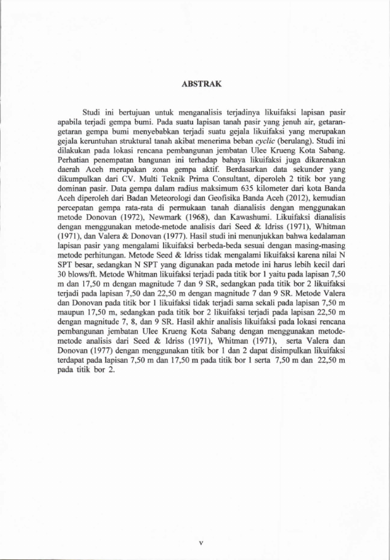 Baca Juga : ANALISIS POTENSI LIKUIFAKSI LAPISAN PASIR PADA LOKASI JEMBATAN KRUENG CUT (MENGGUNAKAN METODE KISHIDA, WHITMAN DAN VALERA & DONOVAN) (Akmal Zulfi, 2016)