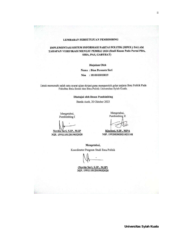 Baca Juga : IMPLEMENTASI SISTEM INFORMASI PARTAI POLITIK (SIPOL) DALAM TAHAPAN VERIFIKASI MENUJU PEMILU 2024 (STUDI KASUS PADA PARTAI PDA, SIRA, PAS, GABTHAT) (Dian Permata Sari, 2023)