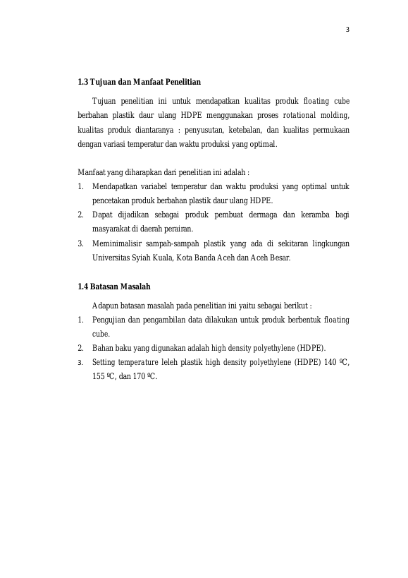 Baca Juga : ANALISIS PROSES PRODUKSI PELAMPUNG TOREN AIR DENGAN RNPOLIMER LDPE DAUR ULANG TERHADAP KUALITAS PRODUK PADA RNPROSES ROTATIONAL MOULDING (Yazid Ichwanal Akbar, 2023)