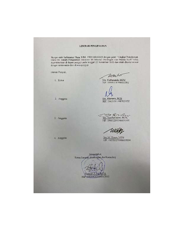 Safinnatun Naza, TINGKAT PEMAHAMAN GURU BK DALAM PENGGUNAAN ASESMEN DI SEKOLAH MENENGAH ATAS BANDA ACEH. Banda Aceh Fakultas KIP Pendidikan Bimbingan dan Konseling,2023