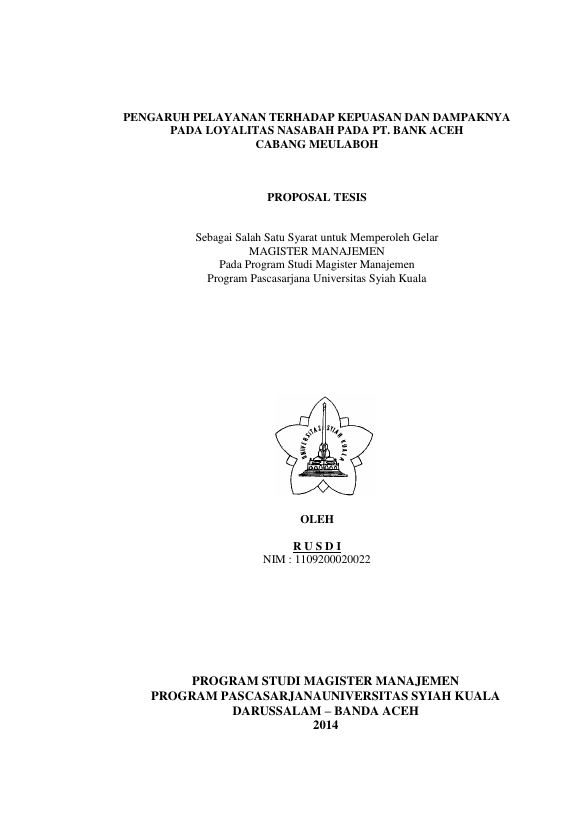 Rusdi, PENGARUH PELAYANAN TERHADAP KEPUASAN DAN DAMPAKNYA PADA LOYALITAS NASABAH PADA PT. BANK ACEH CABANG MEULABOH. Banda Aceh Fakultas Pasca Sarjana,2014
