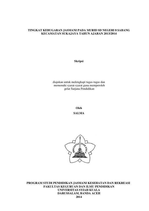 Baca Juga : EVALUASI KEBUGARAN JASMANI SISWA KELAS VI SD NEGERI 1 PANGA ACEH JAYA TAHUN AJARAN 2013/2014 (MISBAH, 2014)