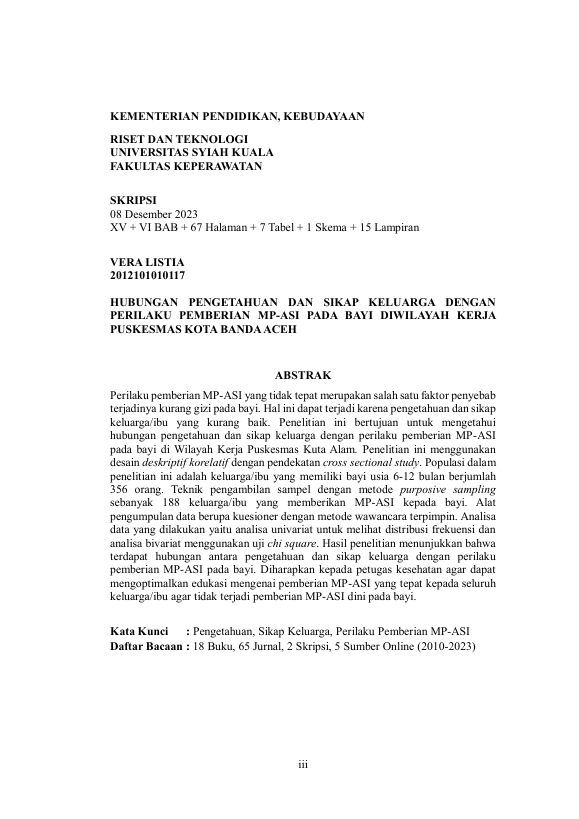 Baca Juga : HUBUNGAN PERILAKU PEMBERIAN MP-ASI DENGAN RNSTATUS GIZI PADA BAYI DI WILAYAH KERJA RNPUSKESMAS KOTA BANDA ACEH (Mutazalifa Istammah, 2025)