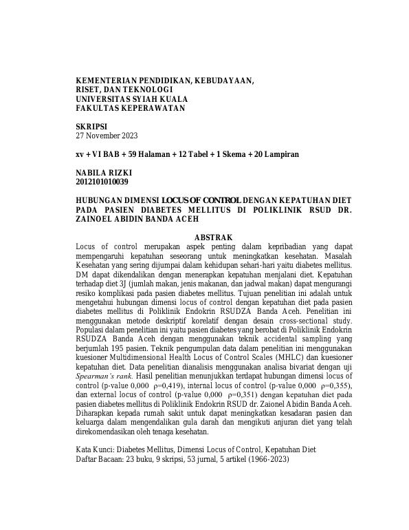 Baca Juga : GAMBARAN FAKTOR-FAKTOR YANG MEMPENGARUHI KEPATUHAN DIET PADA PASIEN DIABETES MELLITUS TIPE II DI POLIKLINIK ENDOKRIN RUMAH SAKIT UMUM DAERAH DR. ZAINOEL ABIDIN TAHUN 2010 (Rita Wardani, 2022)