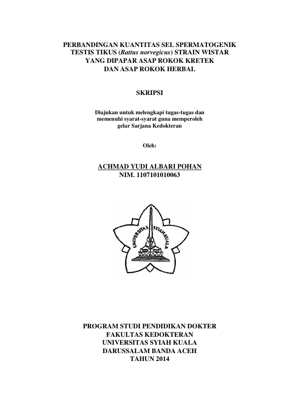 Baca Juga : GAMBARAN HISTOPATOLOGI TESTIS MENCIT (MUS MUSCULUS) YANG TERPAPAR ASAP ROKOK DAN DIBERI EKSTRAK SEMANGKA MERAH (CITRULLUS VULGARIS) (Ayu Agita Ginting, 2016)