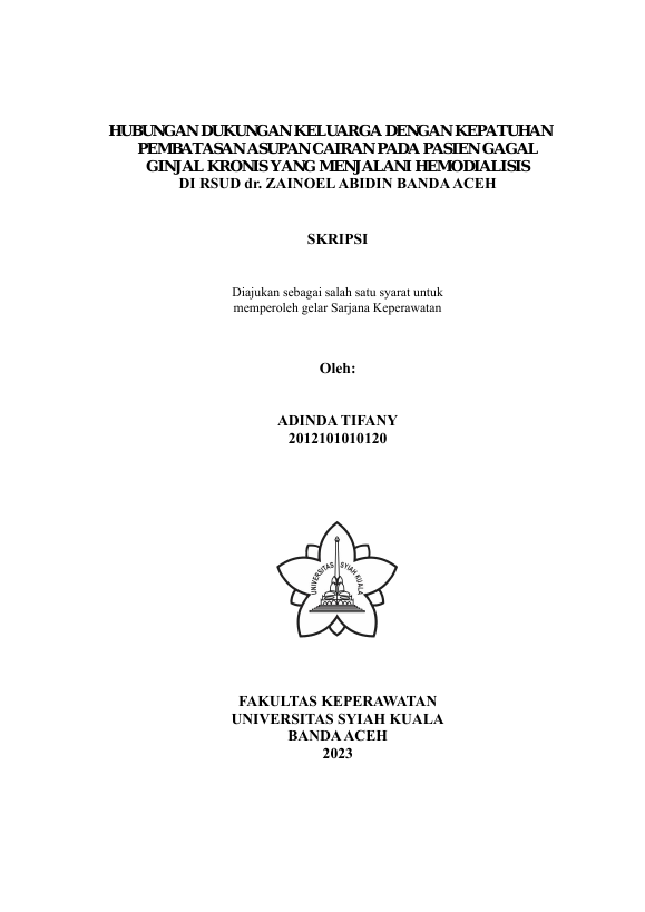Baca Juga : GAMBARAN ASUPAN CAIRAN PADA PENDERITA GAGAL GINJAL KRONIK YANG MENJALANI TERAPI HEMODIALISIS DI RUMAH SAKIT UMUM DAERAH DR.ZAINOEL ABIDIN BANDA ACEH (Nanda Qoriansas, 2023)