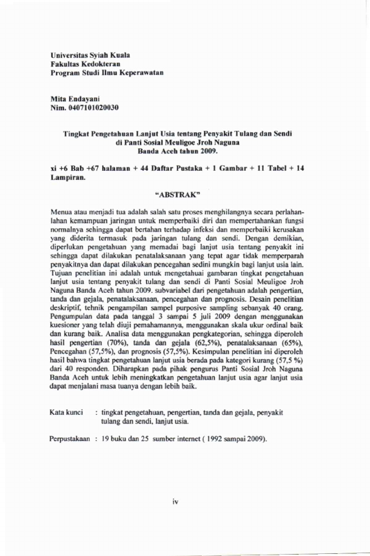 Baca Juga : GAMBARAN UPAYA PENCEGAHAN PENYAKIT TULANG DAN SENDI PADA LANSIA DI GAMPONG LAMBARO SUKON ACEH BESAR TAHUN 2012 (Ririn Novianty, 2023)