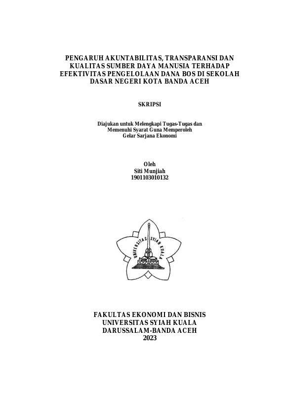 Baca Juga : PENGARUH AKUNTABILITAS, TRANSPARANSI DAN PARTISIPASI TERHADAP EFEKTIVITAS PENGELOLAAN DANA BANTUAN OPERASIONAL SEKOLAH (BOS) DI SEKOLAH MENENGAH ATAS (SMA) DI KABUPATEN PIDIE (ABRAR MAULANA ML, 2025)