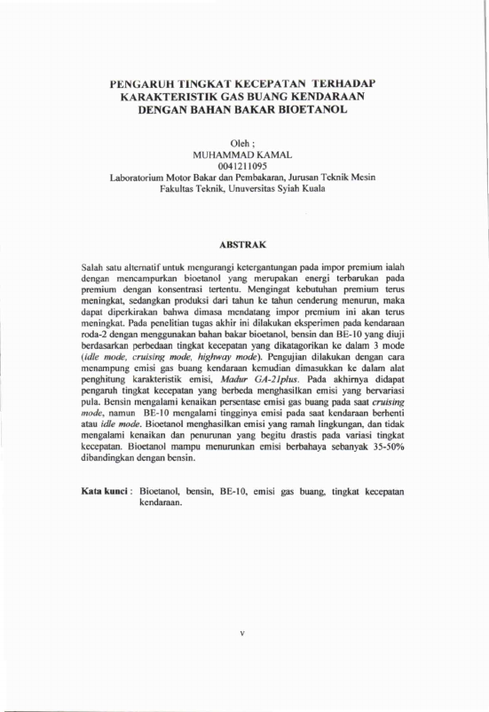 Muhammad Kamal, PENGARUH TINGKAT KECEPATAN TERHADAP KARAKTERISTIK GAS BUANG KENDARAAN DENGAN BAHAN BAKAR BIOETANOL. Banda Aceh Fakultas Teknik,2007
