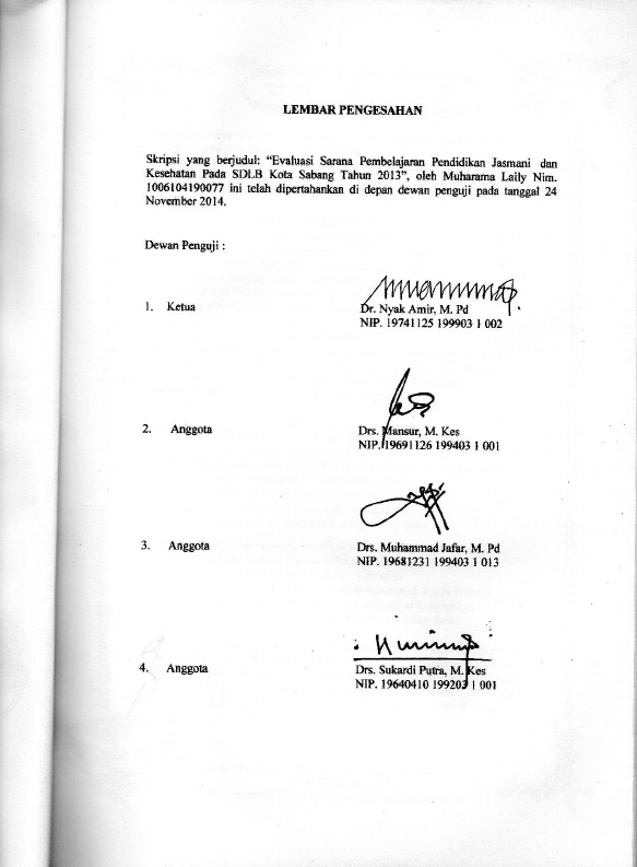 MUHARAMA LAILY, EVALUASI SARANA PEMBELAJARAN PENDIDIKAN JASMANI DAN KESEHATAN PADA SDLB KOTA SABANG TAHUN 2013. Banda Aceh Fakultas Keguruan dan Ilmu Pendidikan,2014