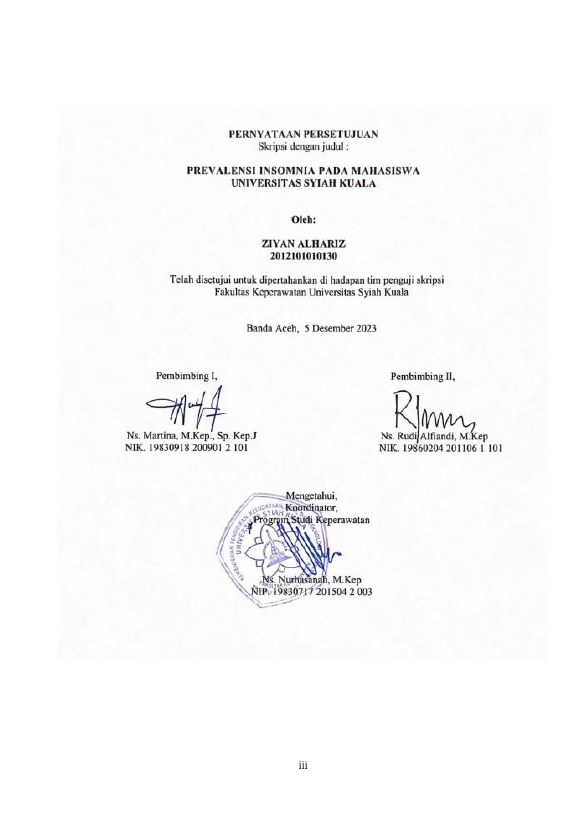 ZIYAN ALHARIZ, PREVALENSI INSOMNIA PADA MAHASISWA UNIVERSITAS SYIAH KUALA. Banda Aceh Fakultas Keperawatan,2023