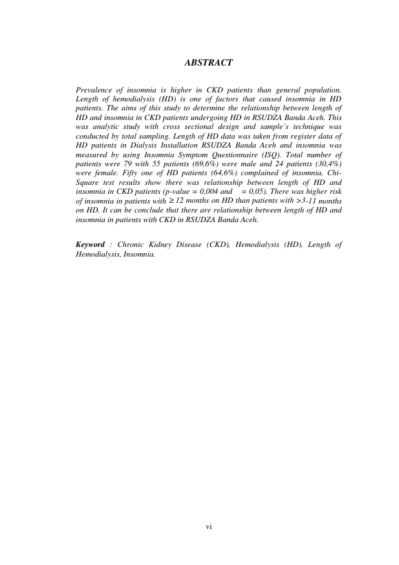 POCUT INDAH SAFITRI, HUBUNGAN LAMA HEMODIALISIS DENGAN INSOMNIA PADA PENDERITA PENYAKIT GINJAL KRONIK DI RUMAH SAKIT UMUM DAERAH DR. ZAINOEL RNABIDIN BANDA ACEH. Banda Aceh Fakultas Kedokteran,2014