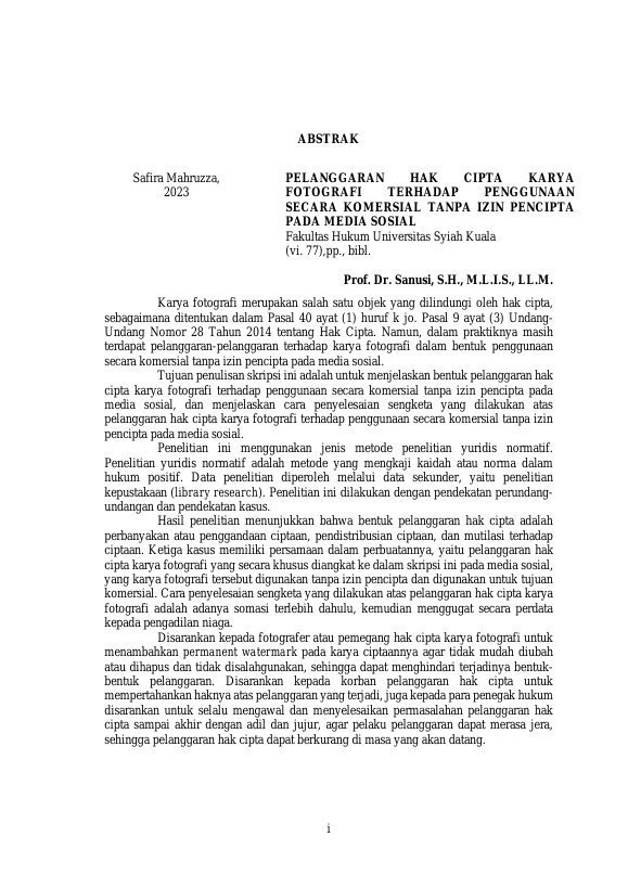 Baca Juga : PERLINDUNGAN HUKUM TERHADAP KARYA FOTOGRAFI PRODUK BELANJA DARING ATAS PENGGUNAAN CIPTAAN SECARA KOMERSIAL DI KOTA BANDA ACEH (Dara Mulia Zahri, 2020)