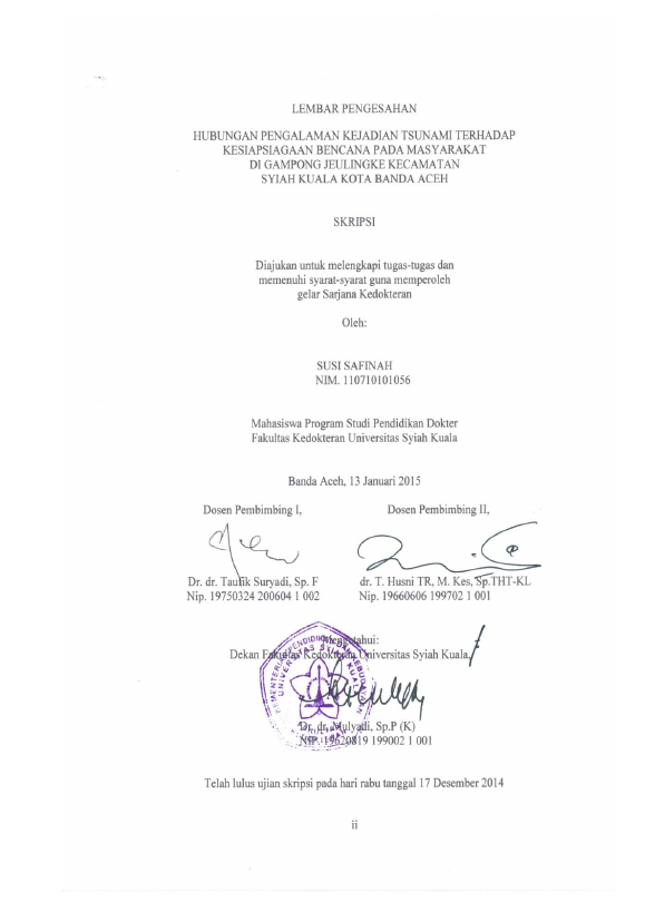 Baca Juga : KAJIAN KESIAPSIAGAAN MASYARAKATPASCA PROGRAM DESA TANGGUH BENCANA DALAM MENGHADAPI BENCANA GEMPABUMI DAN TSUNAMI DI GAMPONG PAYA TIENG KECAMATAN PEUKAN BADA KABUPATEN ACEH BESAR (M. Dedy Jumaidy, 2018)