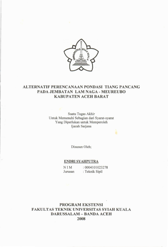 Endri Syahputra, ALTERNATIF PERENCANAAN PONDASI TIANG PANCANG PADA JEMBATAN LAM NAGA - MEUREUBO KABUPATEN ACEH BARAT. Banda Aceh Fakultas Teknik,2008