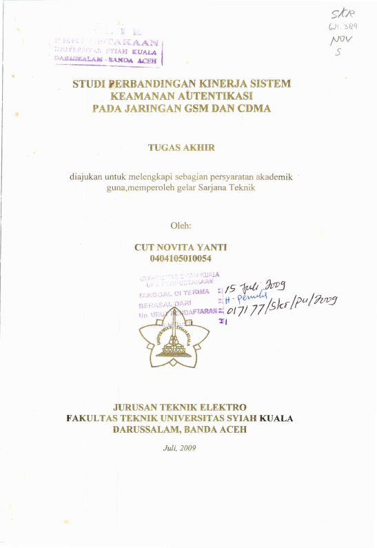 Cut Novita Yanti, STUDI PERBANDINGAN KINERJA SISTEM KEAMANAN AUTENTIKASI PADA JARINGAN GSM DAN CDMA. Banda Aceh Fakultas Teknik,2009