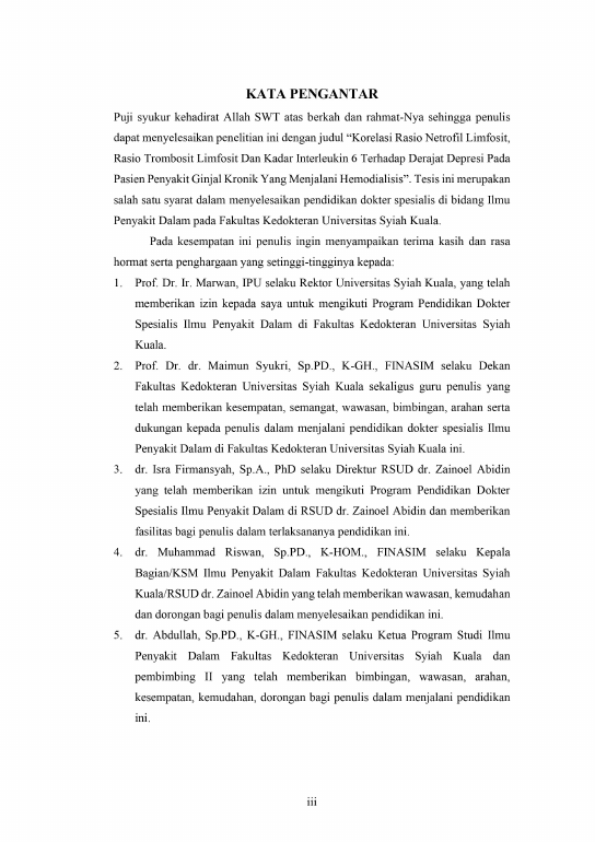 Baca Juga : PENGARUH KADAR INTERLEUKIN-6 TERHADAP DERAJAT DEPRESI AKIBAT PENYAKIT GINJAL KRONIK PADA PASIEN USIA LANJUT YANG MENJALANI HEMODIALISIS (dr. Said Aandy Saida, 2016)