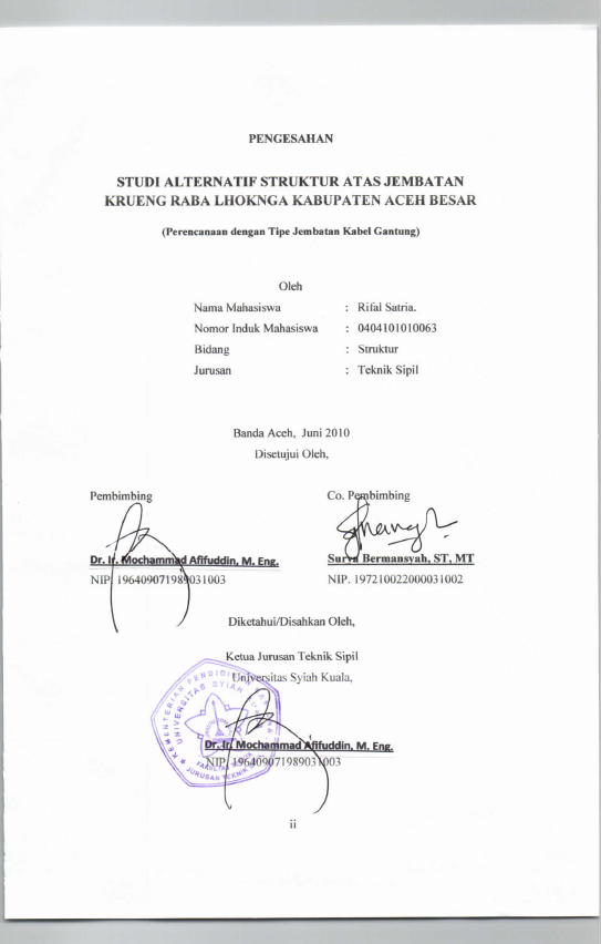 Rifal Satria, STUDI ALTERNATIF STRUKTUR ATAS JEMBATAN KRUENG RABA LHOKNGA KABUPATEN ACEH BESAR (PERENCANAAN DENGAN TIPE JEMBATAN KABEL GANTUNG). Banda Aceh Fakultas Teknik,2010