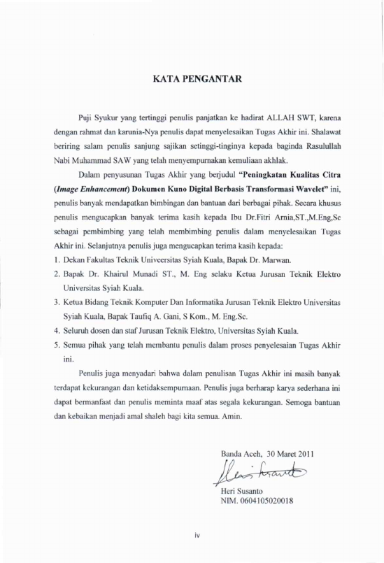 Heri susanto, PENINGKATAN KUALITAS CITRA (IMAGE ENHANCEMENT) DOKUMEN KUNO DIGITAL BERBASIS TRANSFORMASI WAVELET. Banda Aceh Fakultas Teknik,2011