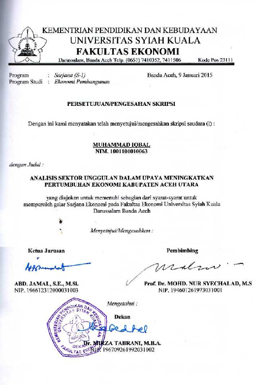 Muhammad Iqbal, ANALISIS SEKTOR UNGGULAN DALAM UPAYA MENINGKATKAN PERTUMBUHAN EKONOMI KABUPATEN ACEH UTARA. Banda Aceh Fakultas Ekonomi,2015