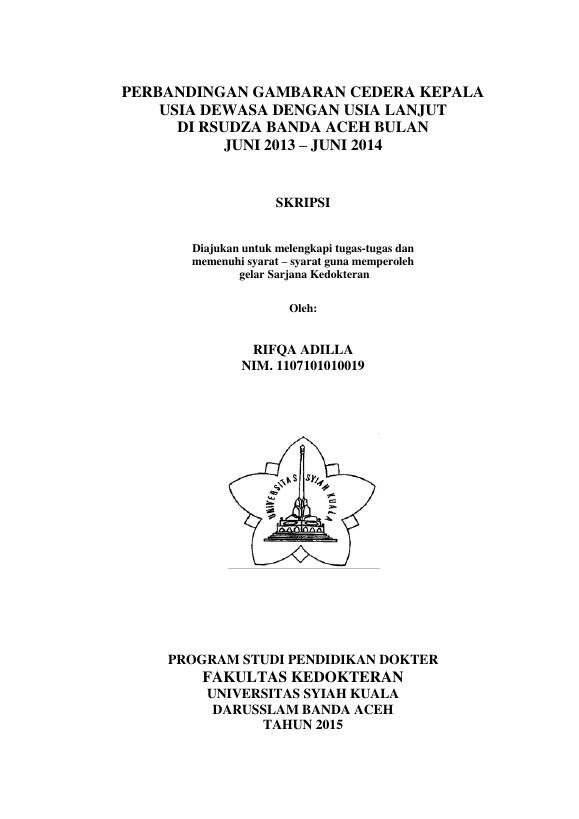 Baca Juga : KARAKTERISTIK PENDERITA CEDERA KEPALA YANG DI OPERASI DI RSUD DR. ZAINOEL ABIDIN BANDA ACEH (Cut Almira Honesta, 2014)