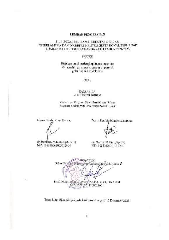SALSABILA, HUBUNGAN IBU HAMIL OBESITAS DENGAN PREEKLAMPSIA DAN DIABETES MELITUS GESTATIONAL TERHADAP LUARAN BAYI DI RSUDZA BANDA ACEH TAHUN 2021-2023. Banda Aceh Fakultas Kedokteran,2024