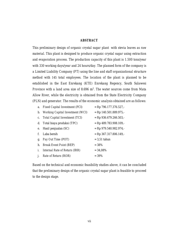 Cut Syafanah Fakhirah, PRARANCANGAN PABRIK ORGANIC CRYSTAL SUGAR DARI DAUN STEVIA DENGAN KAPASITAS RN1.500 TON/TAHUN. Banda Aceh Fakultas Teknik,2024