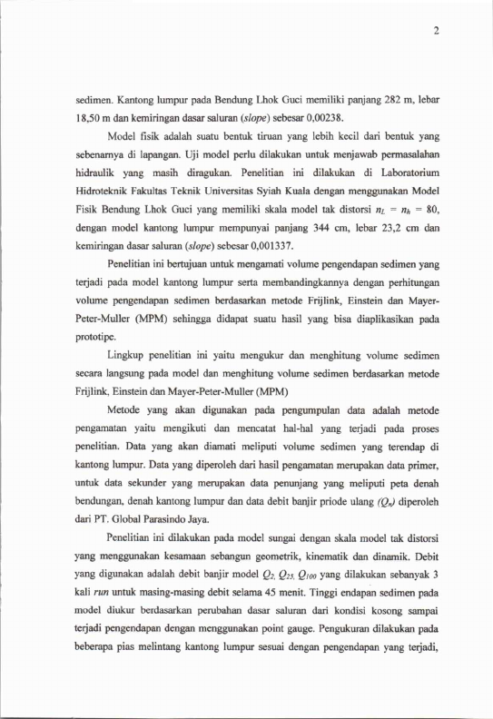 MUCHLIS, PERBANDINGAN MODEL DAN TEORI VOLUME PENGENDAPAN SEDIMEN DI KANTONG LUMPUR. Banda Aceh Fakultas Teknik,2008