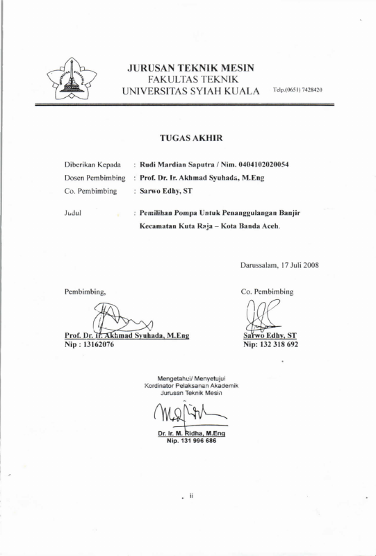 Baca Juga : PERANCANGAN ULANG PEMILIHAN POMPA JOKI FIRE HYDRANT PADA GEDUNG FAKULTAS MATEMATIKA DAN ILMU PENGETAHUAN ALAM (FMIPA) UNSYIAH (MUHAMMAD LUFTI, 2018)