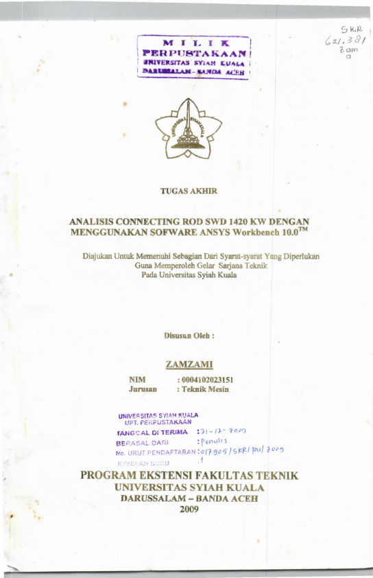 Baca Juga : ANALISIS CONNECTING ROD SWD 1420 KW DENGAN MENGGUNAKAN SOFWARE ANSYS WORKBENCH 10.0" (Zamzami, 2024)