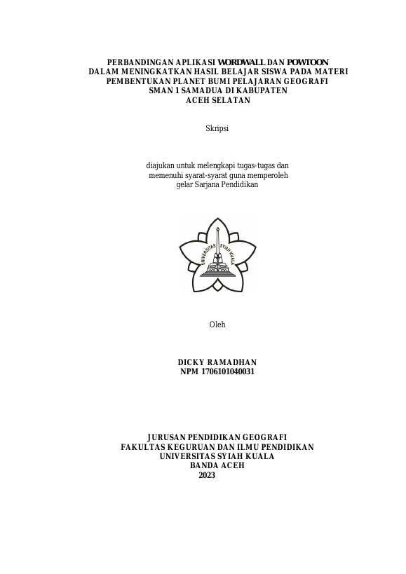 Baca Juga : PENERAPAN MEDIA WEBSITE WORDWALL UNTUK MENINGKATKAN HASIL BELAJAR GEOGRAFI SISWA KELAS X SMA NEGERI 5 BANDA ACEH. (NURUL IMANNISA, 2025)