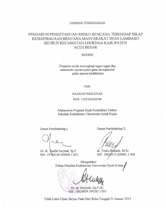 Baca Juga : HUBUNGAN ANTARA PENGETAHUAN MASYARAKAT DENGAN SIKAP KESIAPSIAGAAN BENCANA DI DESA LAMBUNG KOTA BANDA ACEH (Zulfan, 2015)