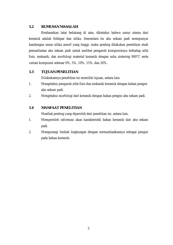 RINALDI ROMAR, STUDI PEMANFAATAN ABU SEKAM PADI SEBAGAI BAHAN PENGISI KERAMIK TABLEWARE. Banda Aceh Fakultas mipa,2024
