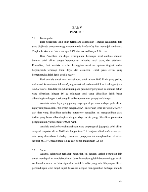 T. Fitra Ardiansyah, OPTIMASI TURBIN ARCHIMEDES SCREW HEAD RENDAH TERHADAP VARIASI LAJU ALIRAN DAN JUMLAH SCREW. Banda Aceh Program Studi Magister Teknik Mesin Unsyiah,2024