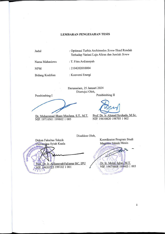 Baca Juga : OPTIMASI KINERJA TURBIN ULIR ARCHIMEDES PADA HEAD RENDAH MENGGUNAKAN METODE ANALISIS VARIANS (ANOVA) DAN ALGORITMA GENETIKA (Teuku Muhammad Aldine Al Kautsar, 2024)