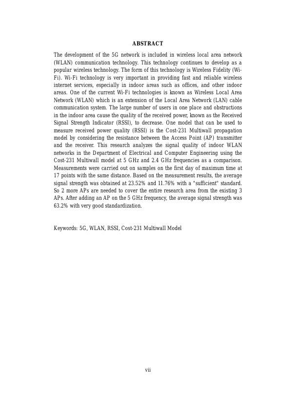 Putri Safraul Balkis, ANALISIS KUALITAS SINYAL JARINGAN WLAN INDOOR 5G MENGGUNAKAN MODEL COST-231 MULTIWALL. Banda Aceh Fakultas Teknik Elektro,2024